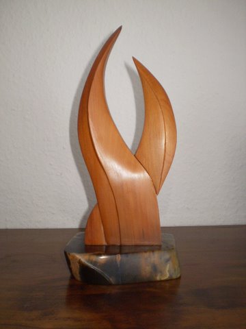 50th wedding anniversary sculpture symbolising the couple nurturing each other - supported by a solid base.